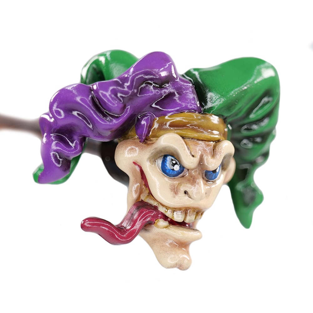 Das Design zeigt einen verrückten Joker mit intensivem Blick, herausgestreckter Zunge und einer zweifarbigen violett-grünen Narrenkappe. Diese Ästhetik ist eine Hommage an das exzentrische Universum von Aerosmith. Der glänzende Lack hebt jedes Detail hervor und sorgt für einen spektakulären Effekt, der sofort ins Auge fällt.