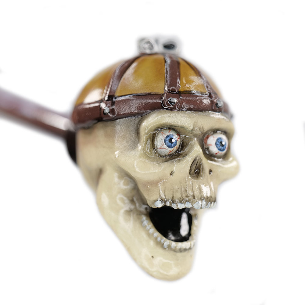 - Exklusives Design: ausdrucksstarker Totenkopf mit Metallhelm.