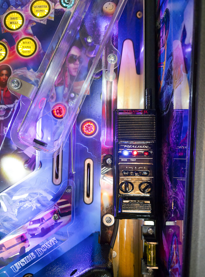 Eine Retro-Ikone gleich beim Abschuss: Dieses beleuchtete Walkie-Talkie-Mod für Stranger Things wird an der Shooter Lane montiert. 3D-gedruckt, geglättet und von Hand bemalt, leuchtet es dank einer an die GI angeschlossenen LED.