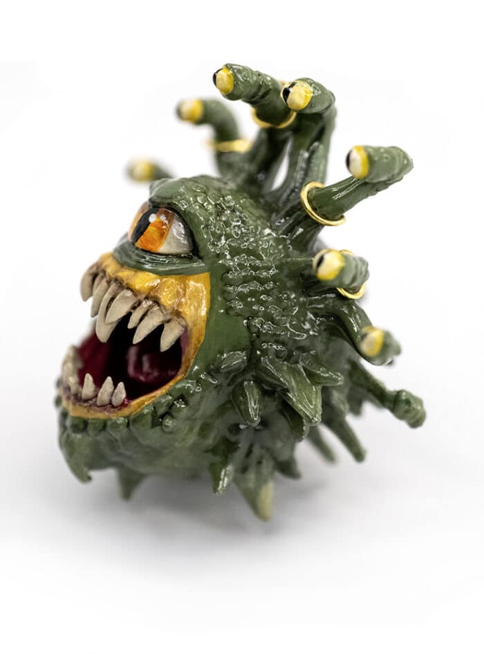Lass die Magie schweben: Dieser 3D-Beholder auf Stange für Dungeons & Dragons entspricht der grünen Version mit goldenen Ringen aus dem LE-Flipper. Vollständig handbemalt sorgt er für beeindruckenden Tiefeneffekt und eine einzigartige schwebende Optik. Farben können auf Wunsch angepasst werden.