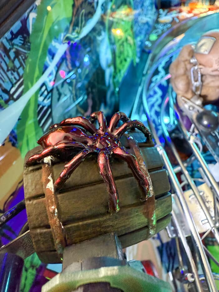 Verleihen Sie Ihrem Flipper Monster Bash, Elvira, Dracula oder The Munsters mehr Charakter: Diese Spot-Abdeckung in Fassform mit violetter Spinne verleiht dem Spielfeld eine einzigartige, schaurige Note.