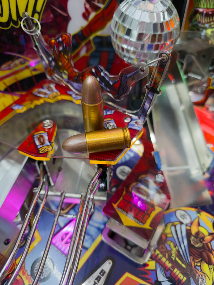 Un détail narratif fort : Cette paire de menottes pour flipper King Kong se pose directement sur les poignets du gorille. Imprimées en 3D et peintes à la main, elles renforcent l’aspect cinématographique du plateau sans aucune difficulté d’installation.