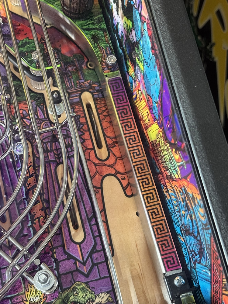 La particularité de ce mod : la bande de plexi autocollante est fournie en un seul morceau afin de garantir une impression parfaitement continue. Il vous suffit ensuite de la découper en deux parties pour l’installer à droite et à gauche du shooter lane. Cette méthode permet une symétrie propre, des couleurs identiques sur les deux côtés et une intégration impeccable autour de la zone de lancement.